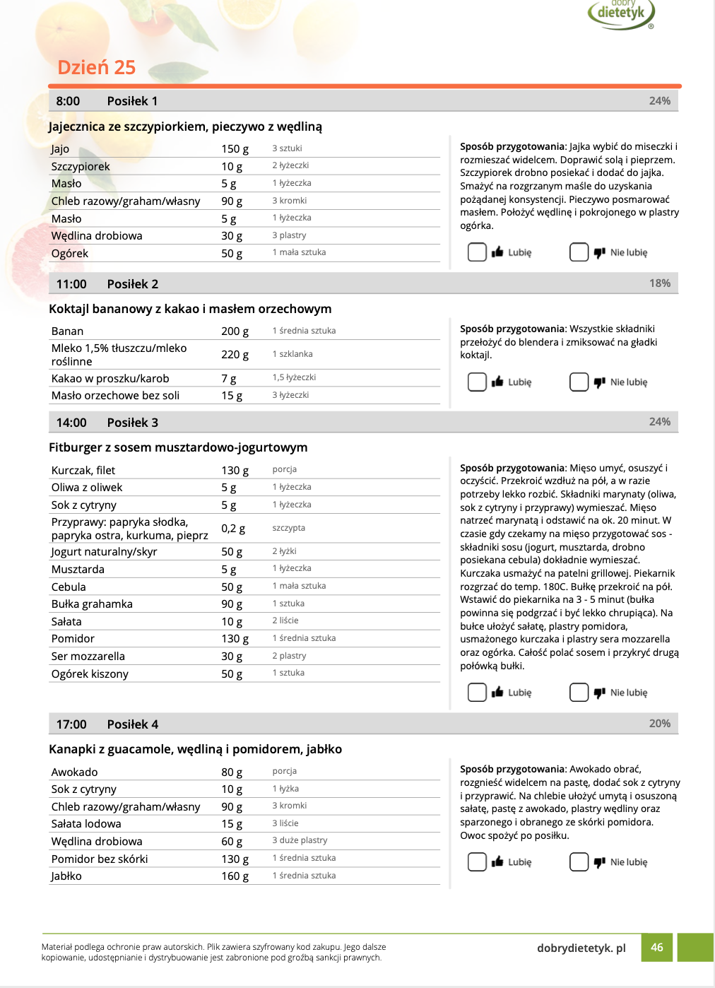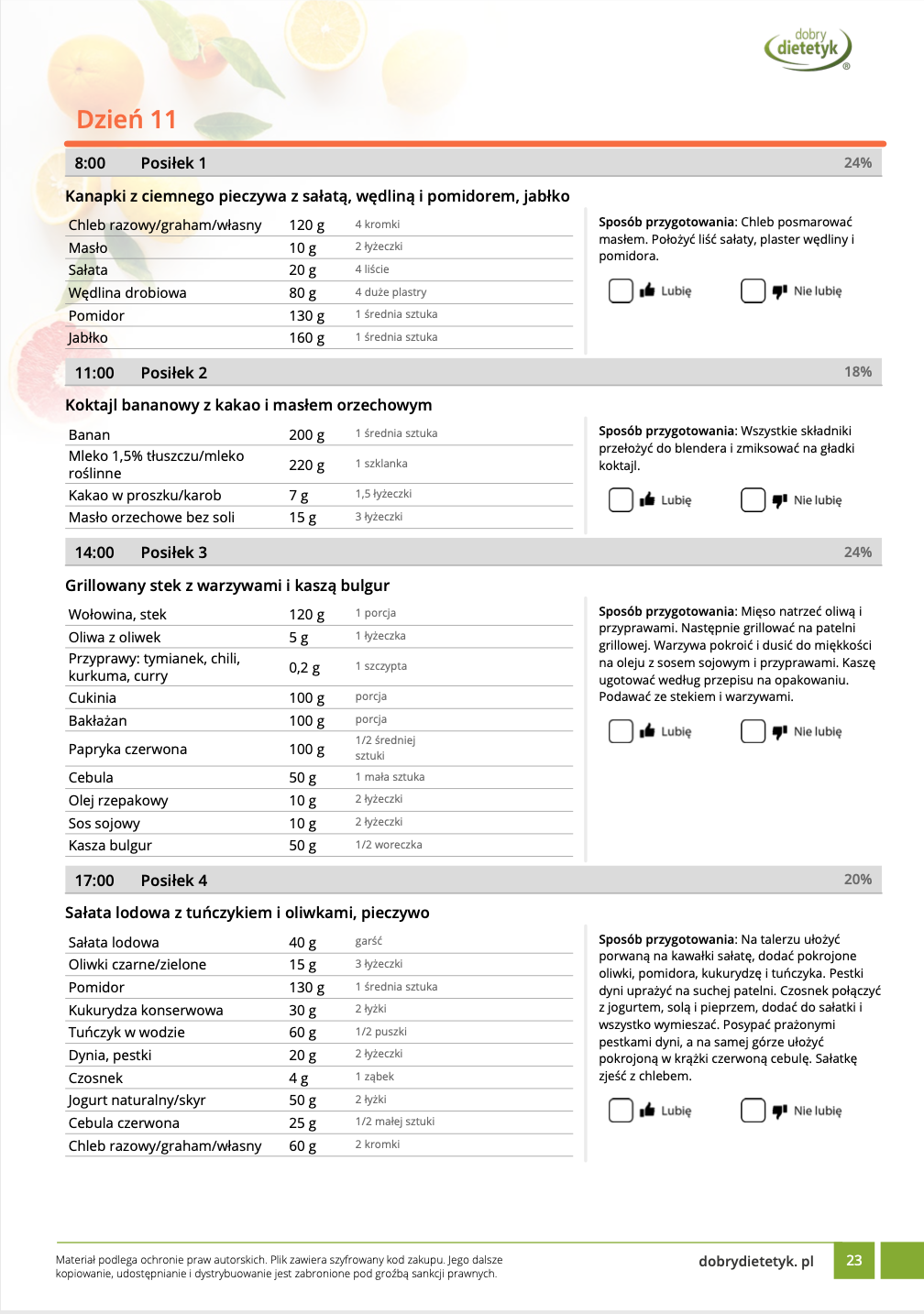• Liczba posiłków w ciągu dnia: 5